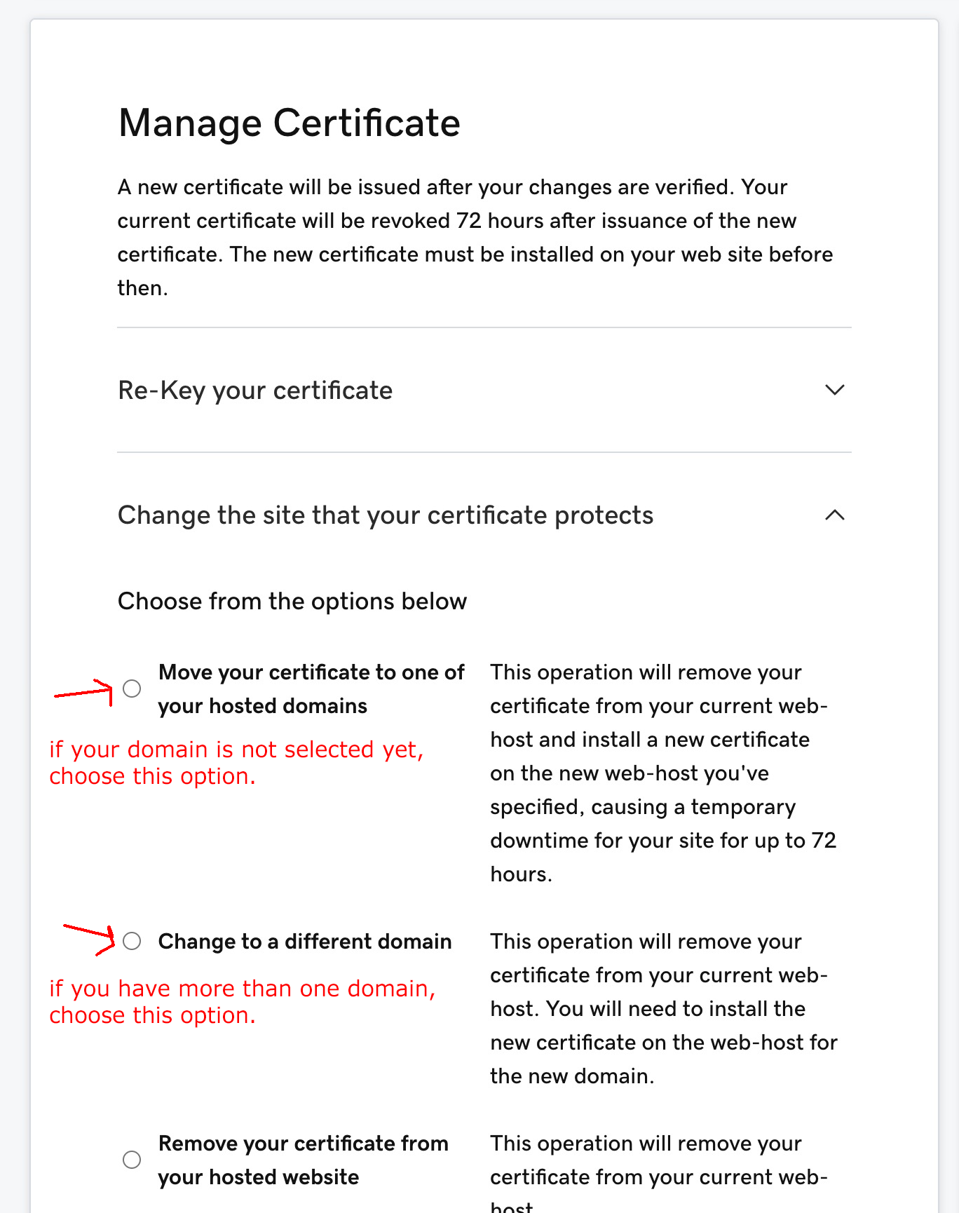 Note: Be sure to give any changes to your SSL certificate or domain time to resolve. It could take several hours. And, use a new browser or fresh browser (cache free) because the old browser could be holding cache that conflicts with the changes.